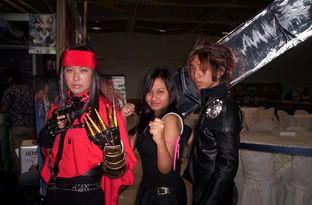 I could, but there's not Aerith there *sobs* Anyway... You're a senior in Assumption? Isn't there an upcoming Job Fair? :lol: If I'm not mistaken our schools are members of the so-called Consortium of Women's Colleges. Anyway, here are some pictures of the nasty cosplay. Go ahead and laugh! Yeah, the Vincent Valentine is a girl... ...and if you notice I'm trying to stay as far away from Cloud as possible. And he even bumped the buster sword against my shoulder one time during one of the many poses. <_< So much for that.The girl who cosplayed as Dark Chi from Chobits is my friend "Rikku". ^_^' Vincent, Tifa & Cloud Dark Chi & Tifa |