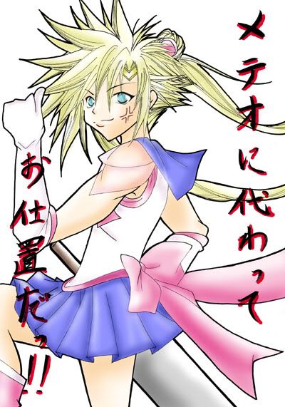 Yay, Cloud albums!!! ![]() AAAAUUUHHH!!!! My eyes, my eyes!!! *feels her eyes burning out* Omg, Cloud as Sailor Moon?! *shudder* And in that. . . *gouges out mind's eye* They're funny, but very disturbing! *goes to comfort Cloud* |
