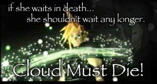 I want to join, too!!!!!!!!! I really love Cloud, but for this reason he must die (beautyful and memorable ending ^^)! And with his death are Sephiroth and Jenova´s deaths, too ^^...And the most important reason: he could be with Aeris in their Promised Land!!