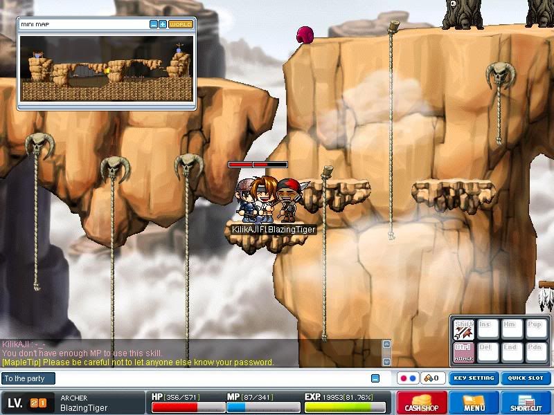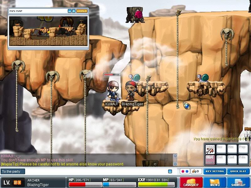 After endlessly training, I have finally made it to lvl 35! And now all the rest of you must cower before me! Or i won't give you anything! Muhahahah! Just kidding. If you guys want to play with me, just add me, and if you can't whisper me and I'll make room to add you to my buddy list. Happy Mapling! |